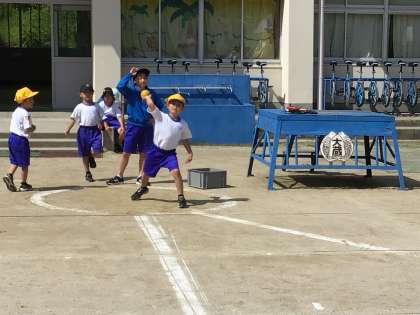 運動場には50メートル走やボール投げのラインが引かれ、砂場の土も掘り起こされて練習ができるように整えられました。