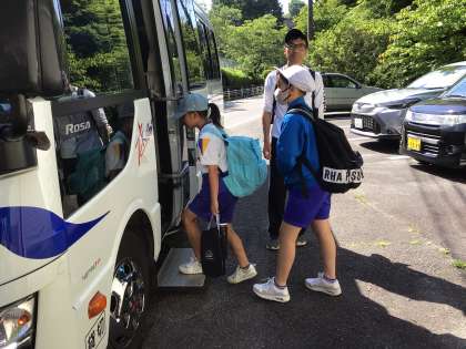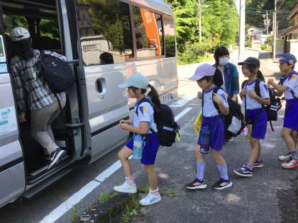 朝の会が終わったら、それぞれバスに乗って出かけました。