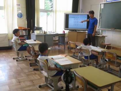3時間目は国語の授業です。小さくなるひらがな「ゃゅょ」の学習をしています。