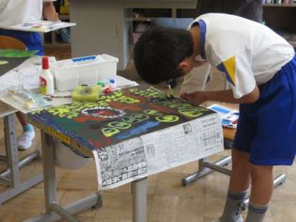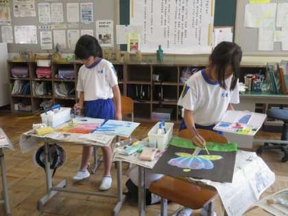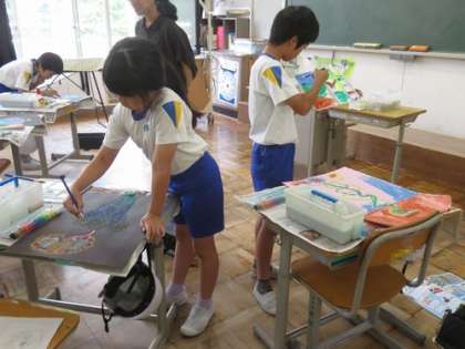 3時間目は図工の時間です。「まぼろしの花」というテーマで絵を描いています。自分だけの「まぼろしの花」。想像がふくらみます。