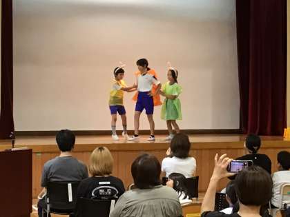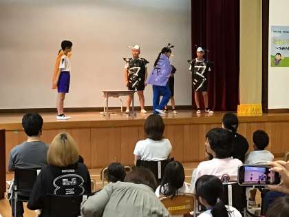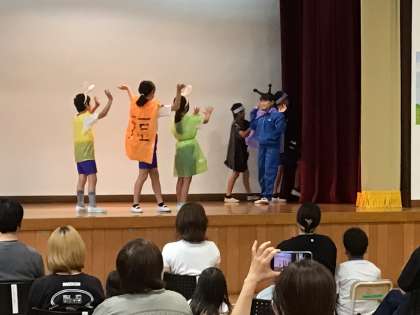 前向きに考えることについて、劇を通して参加者に伝えました。