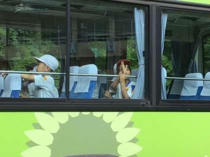 今日の午前中は1年生から4年生が交通安全教室のため、バスに乗って豊田市交通安全学習センターに、56年生は地域学習として中立方面にそれぞれ出かけました。