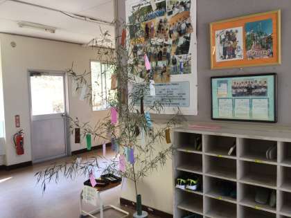 今日は七夕 公開日 2025/07/07 更新日 2025/07/07 お知らせ 7月7日、今日は七夕です。 地域の方が笹の木を持ってきてくださったので、笹の葉に願い事の短冊を吊り下げましたが みんなの願い事が叶うといいですね。