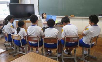 本日のさわやかタイムは読み聞かせです。涼しい教室で、ボランティアさんの上手な朗読を聴きながら、子どもたちは本の世界に引き込まれていきました。