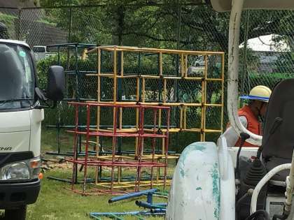 遊具が老朽化してきたため、撤去工事を行うことになりました。