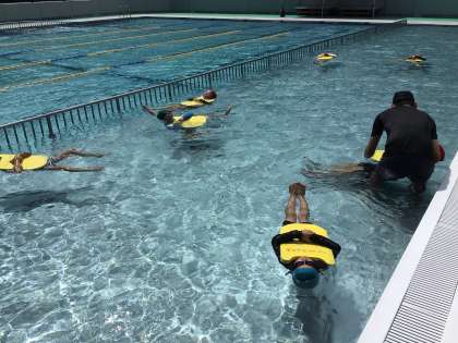 昨年は天候が悪く、2回しか水泳ができませんでしたが、今年は順調に5回の指導ができました。