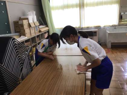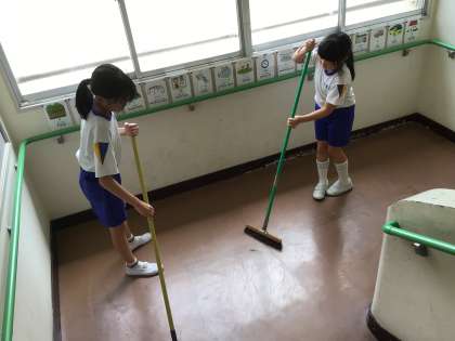 夏休み前最後の掃除の日は、いつもより丁寧に活動していました。