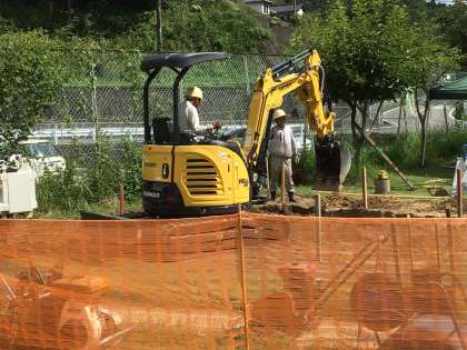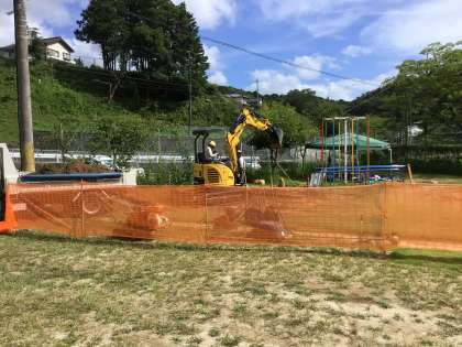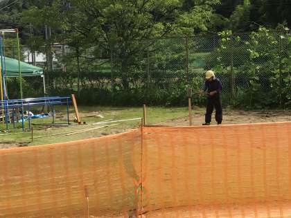 この暑さにも関わらず、新しい遊具設置のため工事が続いています。