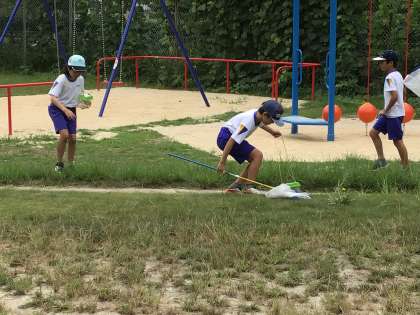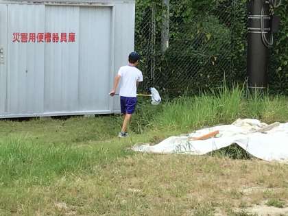 34年生が理科の「夏の終わりごろ」の学習で、校庭にある植物の様子を観察したり、虫を捕まえたりしていました。「夏の終わりごろ」は9月初旬の単元ですが、気温的にはまだなかなか「夏の終わり」を感じられませんね。