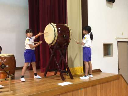先週は音楽室で練習していましたが、今週は本番と同じ集会室で練習をしています。