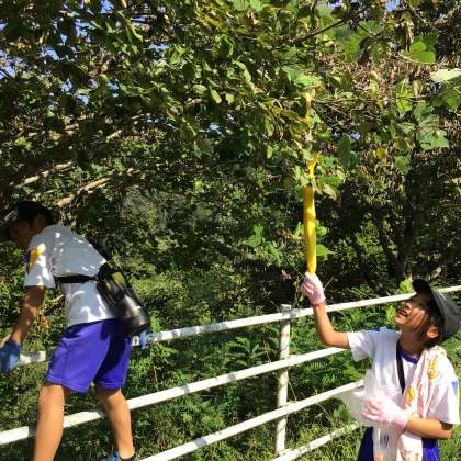気温がすぐ高くなってしまうため、朝早く学校を出て活動しました。