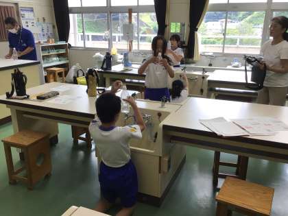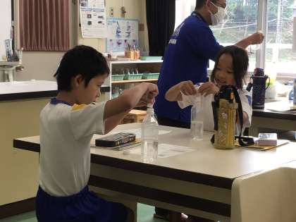 トイレットペーパーと、普通のティッシュでは水の溶け方が違うことなどは子どもたちが実験をして体感しました。