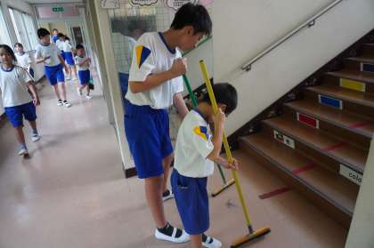 教室の掃除の後は、特別教室や廊下や階段などを掃除しました。