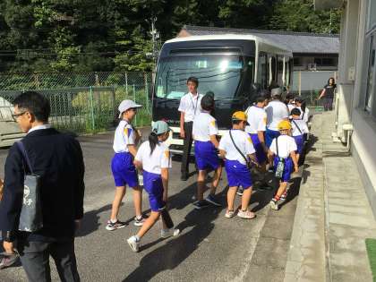 大蔵小学校の子も全校児童と教員がバスに乗って出かけました。宮前の駐車場から徒歩で移動ですが、天気も良くて、ちょっとした遠足気分になりました。