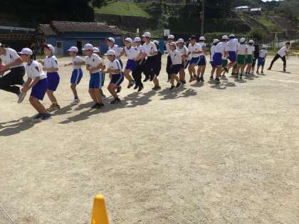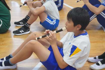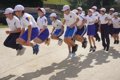 1時間目は音楽。加藤教頭先生の指導で、普段できない30人規模の合奏や合唱を行いました。2時間目は運動場で大繩の授業でした。30人が一斉に跳ぶのはかなり難しく、何回も失敗しましたが、最後には30人の一斉跳びを成功させ、記録も伸ばしていくことができました。