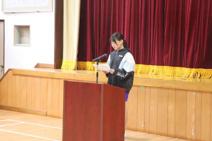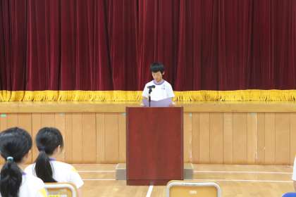 式では最初に246年生の代表の子が、前期にがんばったことや思い出、後期に向けて目標にしていることなどを発表してくれました。