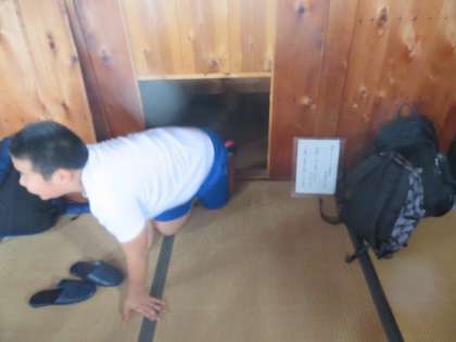 足助城の本丸では隠し扉から実際にこどもたちが入り、部屋の周りを匍匐前進状態で1周する体験もできました。