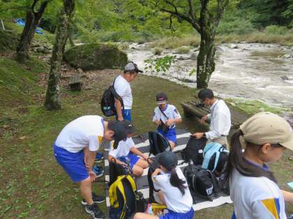 56年生 校外学習 香嵐渓にて 公開日 2025/10/16 更新日 2025/10/16 お知らせ 15日の56年生の校外学習は、午前は足助城、午後は足助の旧伊奈街道の見学でした。 足助城見学の時は小雨でしたが、昼食時には雨もあがり、香嵐渓で昼食をとりました。