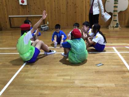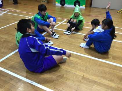 保健のめあて、生活のめあてにどう取り組めたか、色別グループごとに発表しあいました。