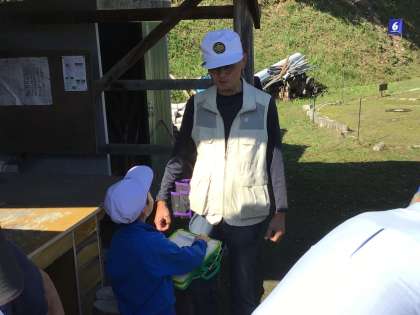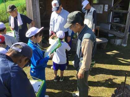 マレットゴルフをやっていて楽しかったことや、続けられるコツとか、「マレット」の意味など、子どもにとって気になったことをいろいろ質問していました。