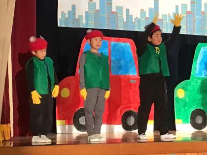 男の子たちが田舎のねずみの素朴さや素直さや初めて都会を見た驚きなどを元気に演じました。
