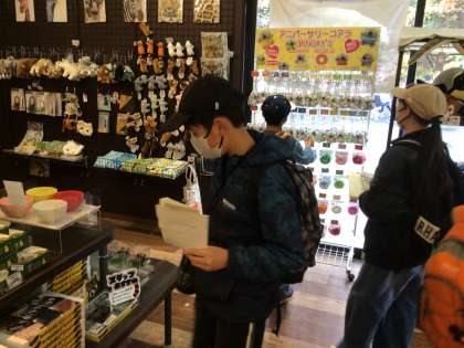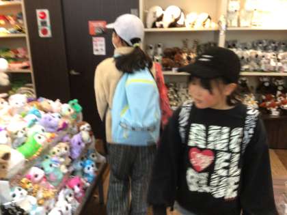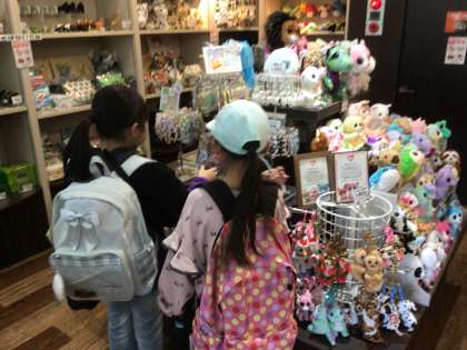 お小遣いの1000円で何を買おうか、みんな迷いながらグッズを見ていました。