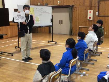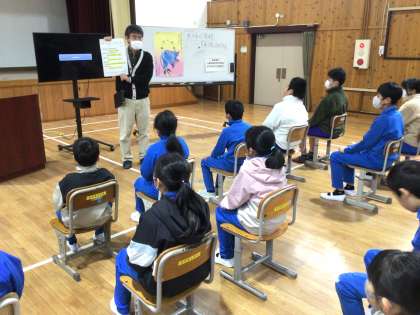 さわやかタイムに集会室に集まり、校長先生からこどもの人権についてのお話を聞いたり、村上先生から、人権週間での取組についてのお話がありました。