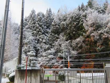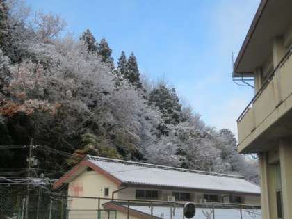 学校の周りは銀世界 公開日 2025/12/04 更新日 2025/12/04 お知らせ 12月4日の朝、昨夜から朝方に降った雪が積もっていました。グランドは土が見えていましたが、校舎の屋根や学校周辺の山には真っ白な雪が…。きれいでした。