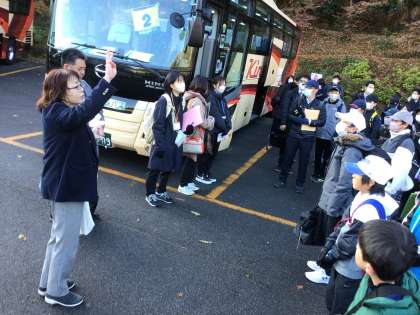 参加しているみんなに、養護教諭の先生や添乗員さんを紹介して、それぞれバスに乗りました。