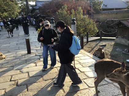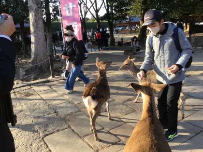 奈良公園といえば、鹿です。 鹿せんべいを買って、みんな鹿と戯れます。
