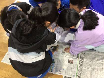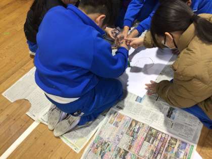 使える指は1本だけ。ペットボトルについたマジックを仲間と力を合わせながら絵を描きました。