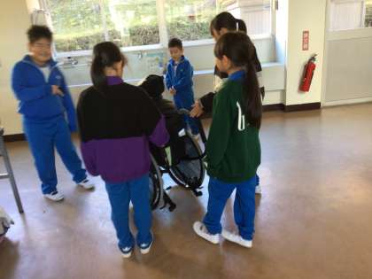 15日、12年生は大蔵小学校校区に住む豊田特別支援学校の児童と交流をしました。