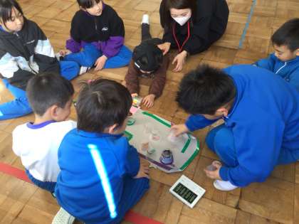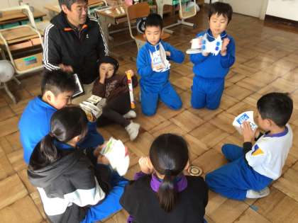 お互いに手作りの楽器で演奏したり、しりとりをしたり、生活科で作ったおもちゃやゲームを使って交流しました。