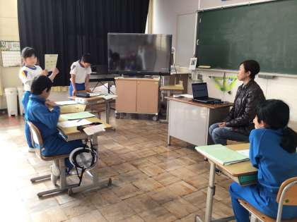 16日、34年生は総合的な学習で「山恵さんにお話を聞こう」を行いました。