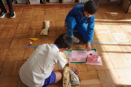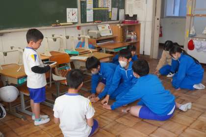 12年生が生活科で考えた自作のおもちゃを使って、3年生以上の子を招いておもちゃ祭りを開催しました。