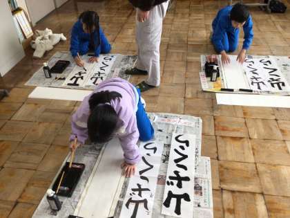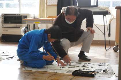 毎回、書写の指導にボランティアで教えてくださっている河合さんが来校してくださり、子ども達にアドバイスをおくってくださいました。