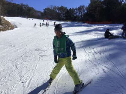 今回、初めてスキーをやった子も、午後になるとすっかり上達しました。
