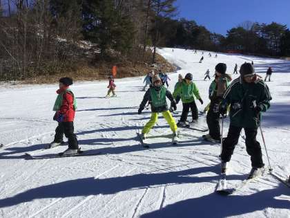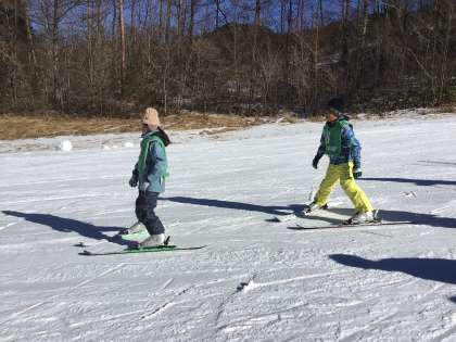 午後はストックをつかうことなく、膝の使い方や体重移動、体の向きなどに気をつけながら練習を続けました。