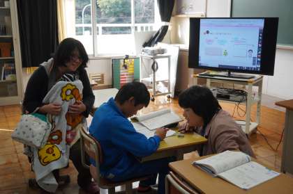 4年生は算数で何倍になるか考える授業でした。