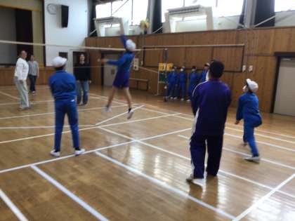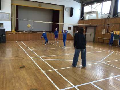 56年生は体育。親子でバレーボールをしました。