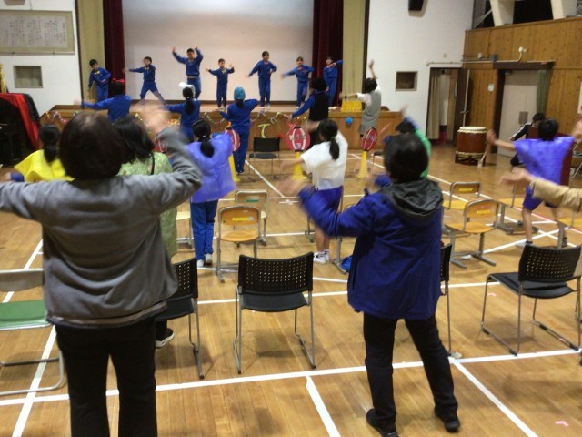 最後は全校児童も教員も一緒に踊りました。