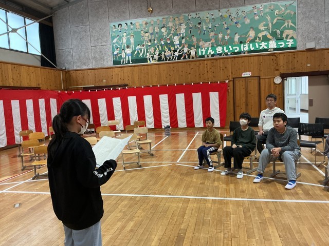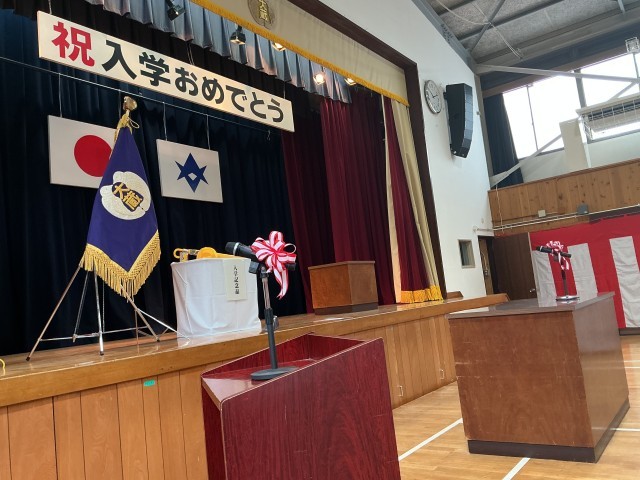 お花の準備や式場の準備もすっかり終わった後で、4年生以上の子で入学式のリハーサルを行いました。