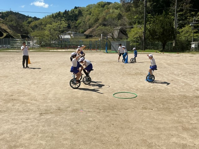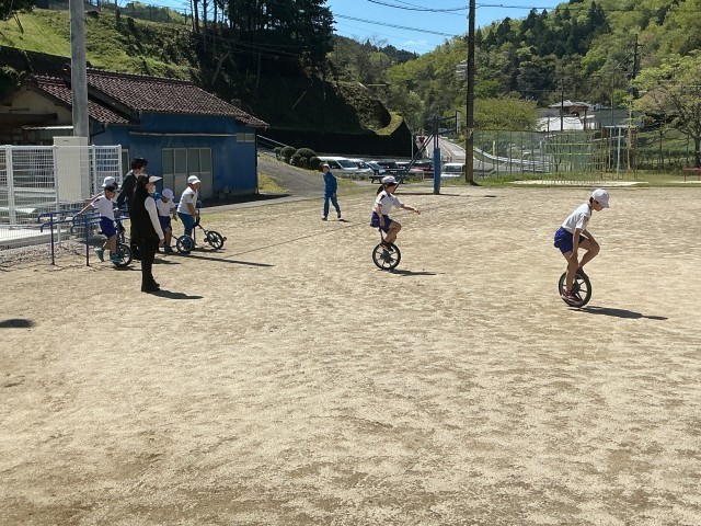 入学してまもない1年生も含めて、これからの大蔵小学校は一輪車の季節です。