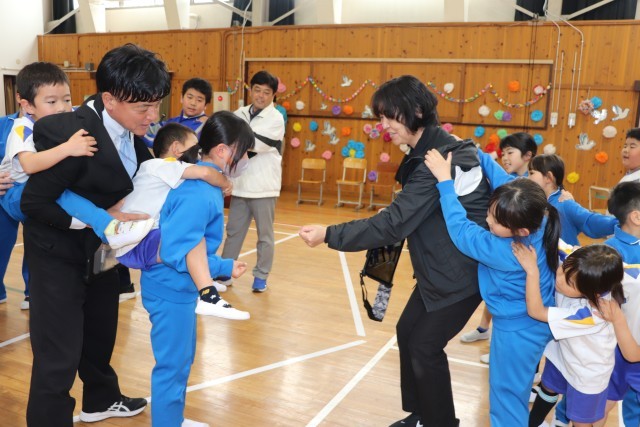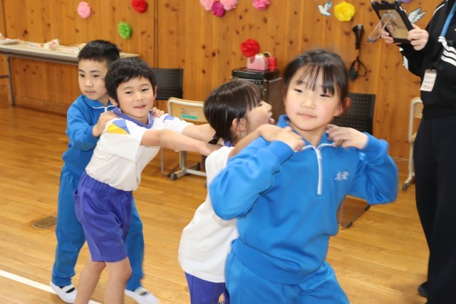 1年生を迎える会、2つ目のゲームはジャンケン記者ぽっぽでした。
