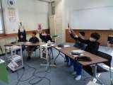 ひまわり学級 対話トレーニングの様子です。 今日も、言葉カードや五十音表を使って...
