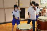 和太鼓クラブの活動の様子です。 地域講師から、太鼓のたたき方、構えなどを学び、リ...