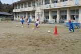 3時間目は体育の時間です。『ボールけりゲーム』を学習しています。はじめに、ペア...