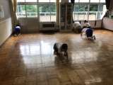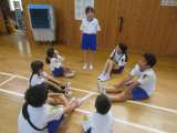 中学年の体育 熱中症警戒アラート発令中のため、集会室でドッジボールをしました。