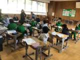 2年生が、算数で長さを学習しています。今日は、「1メートル」のものさしを使い、...