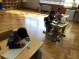 1年生と2年生は合同で折り紙をしていました。作っているのは雪だるまです。かわい...